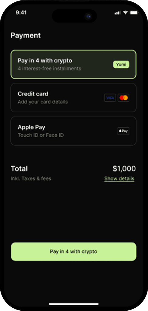 Shop like you normally would. When it’s time to pay, just choose Yumi as your payment option
