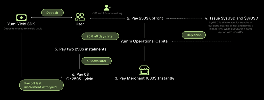 Yumi is the first fully on-chain BNPL solution that rewards your customers for responsible spending. It boosts conversions and retention without adding complexity.